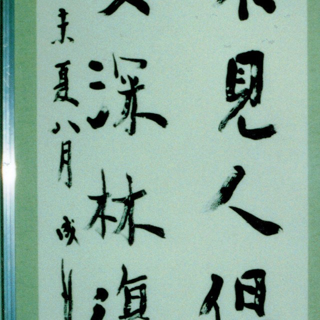 唐 王維 鹿柴詩「宝山人を見ず。ただ人語の響くを聞く。返景深林に入り、復た青苔の上を照らす。」